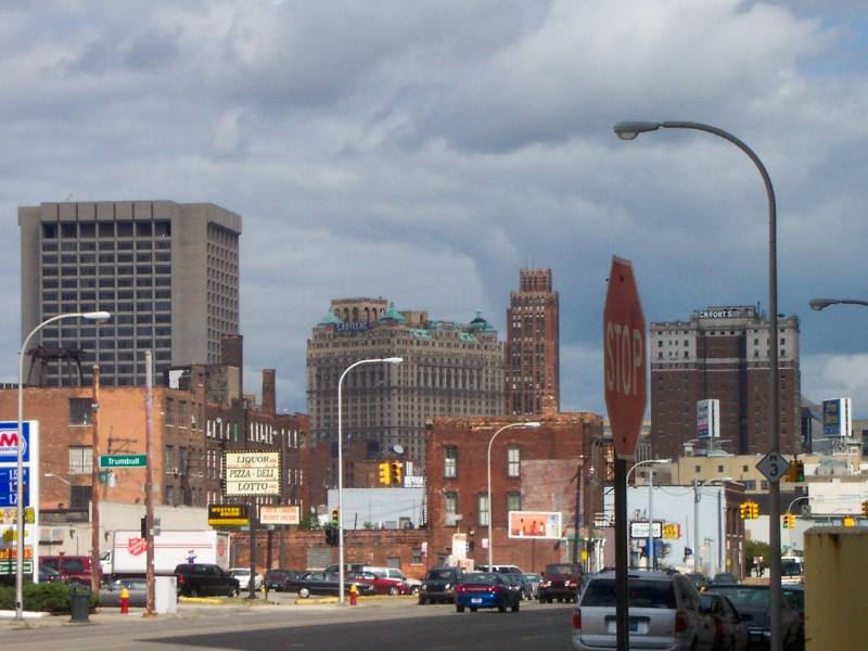 A shot looking east from W. Fort Street near Trumbull.