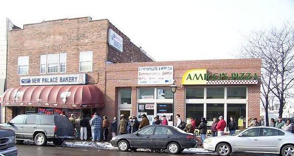 The line forms outside the New Palace Bakery, waiting to buy glorified jelly donuts. Is it "Fat Tuesday" already? I think I'll wait a while until the line thins out a bit and I'm not even gonna try to spell "poonchkey".