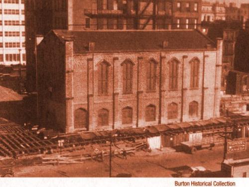 Mariners Church being moved. It appears as though the steeple was left behind. Picture was scanned from the Detroit Almanac.
