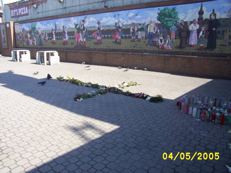 The Papal Monument turned Memorial in Hamtramck. May you rest in peace with the Lord Pope John Paul II.