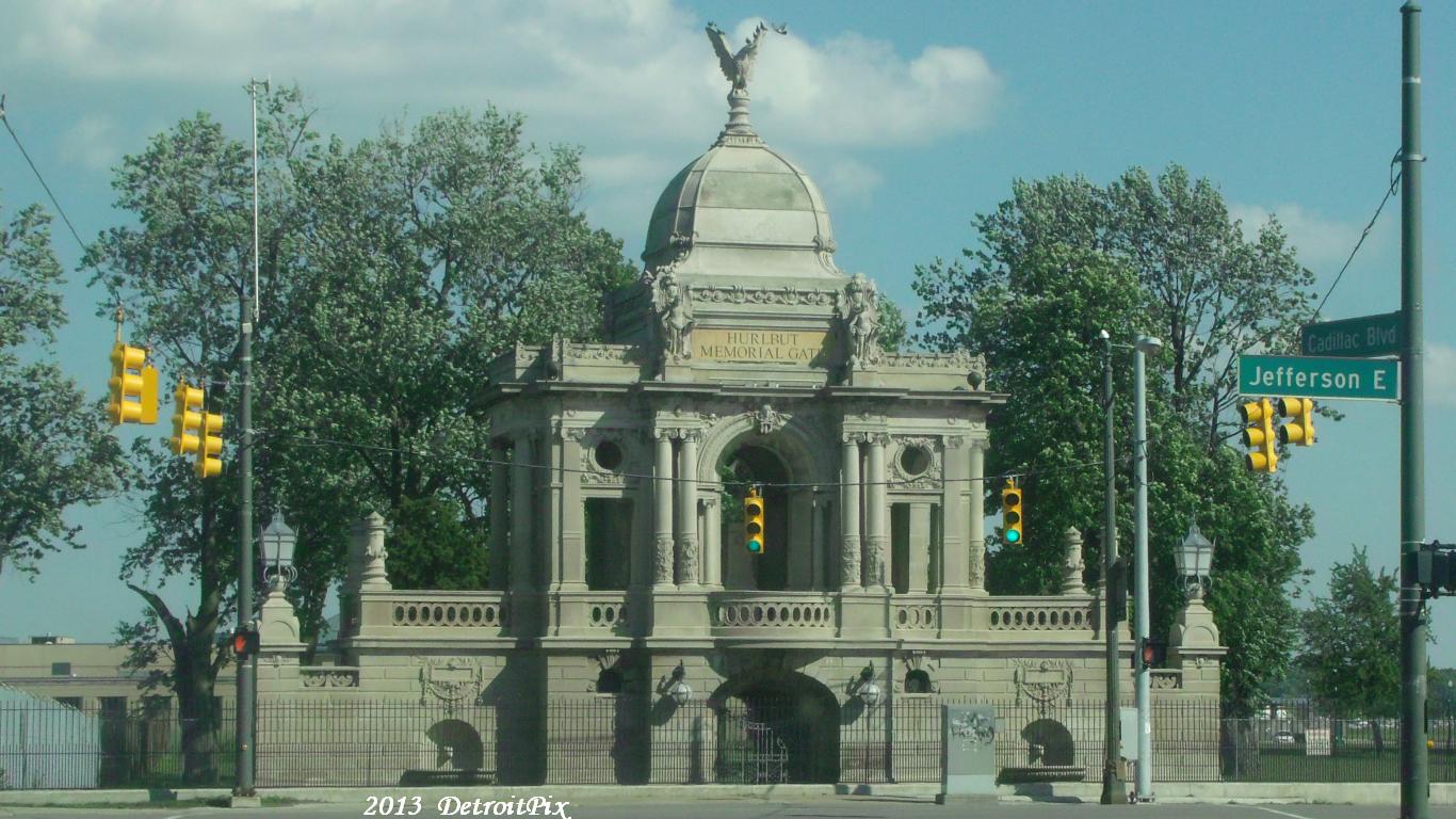The Hurlbut Memorial Gate at Waterworks Park; East Jefferson and Cadillac.