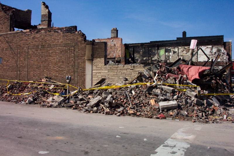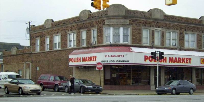 The devastated Commor Building / Polish Market in Hamtramck. Scroll down and hover your mouse for text to take the tour...