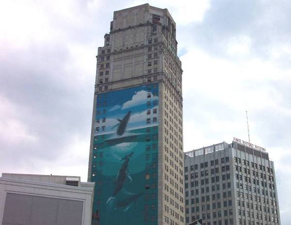 The Broderick Tower. Part of the Detroit Opera House and the David Whitney Building can be seen.