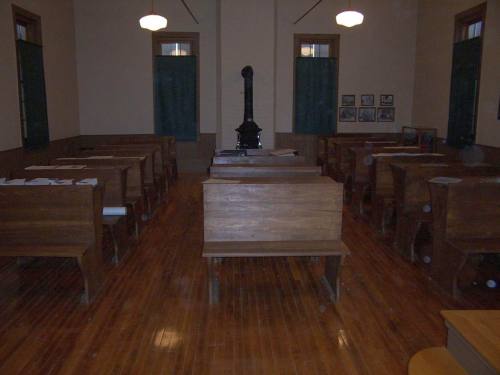 Let's take a peek at the interior of the schoolhouse.