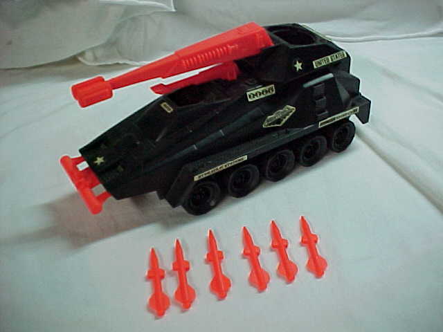 1983 Dragonfly (Rudder gun glued on, check out picture)--$20.00 1983 Mobat--$25.00 1983 Polar Battle Bear w/Blueprints--$14.00 1983 Polar Battle Bear (2)--$12.00 1983 Polar Battle Bear (Canadian stickers) $12.00 1984 Armadillo (2)--$8.00 1984 ASP (3)--$15.00 1984 LCV Recon Sled--$9.00 1984 Manta--$12.00 1985 Bomb Disposal (4)--SPECIAL $6.00 EACH 1985 Bridgelayer w/Driver Tollbooth--$30.00 1985 Night landing--$12.00 1985 Snowcat w/Frostbite (Broken missile launcher tab, still stays on, hardly noticeable) (2) $17.00 1985 Weapon Transport w/Blueprints $8.00 1986 Devilfish w/Blueprints, vehicle has broken tab wher figure stands, doesn't affect vehicle staying together--$14.00 1986 Havoc w/Cross Country--$20.00 1986 Triple wSgt. Slaughter--$15.00 1987 Air Skiff wZanzibar (3)--$12.00 1987 Drednok Cycle w/Blueprints $13.00 1987Hydro Sled w/blueprints (2)--$8.00 1983 Mamba w/Gyro Viper--$40.00 1987 Persuader w/Backstop figure--(3) $13.00 1987 Pogo w/Blueprints--$8.00 1987 Pogo (2)--$7.00 1987 S.L.A.M.--$10.00 1988 AGP w/Nullifier Pilot (2)--$15.00 1988Battle Barge w/blueprints--$7.00 1988Battle Barge--$6.00 1988 Despoiler--$8.00 1988 Imp--$12.00 1988 Jet Pack (2)--SPECIAL $5.00 EACH 1988 Night Raider (Night Force Toy-R-Us Exclusive)--$40.00 1988 Night Shade w/Blueprints (Night Force Toy-R-Us Exclusive)--$40.00 1988 Night Shade (Night Force Toy-R-Us Exclusive)--$35.00 1988 Night Storm (Night Force Toy-R-Us Exclusive)--$40.00 1988 Tiger Force Shark (beautiful condition)--$20.00 1988 Swampmasher--$10.00 1989 Mudfighter w/Dogfight (Pilot)--$16.00 1989 BF 2000 Pulverizer w/blueprints--$12.00 1989 BF 2000 Pulverizer--$10.00 1989 Python Patrol ASP--$18.00 1991 Brawler--$15.00 1993 Arctic Blast--$8.00 1993 Armorbot--$25.00 1998 Mobat--$20.00 Incomplete Vehicles