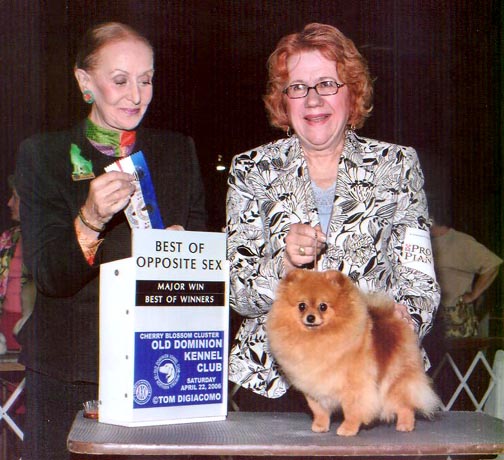 | 3/13/06 | American Pomeranian Club | BOS Senior In Sweeps | Mrs. Sue Goddard | -