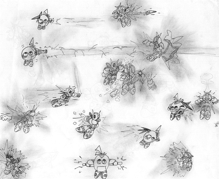 "Death to all mecha!!!!" as Mark would say. Well, he can talk the talk, and as the pic shows, he can walk the walk. So can Gel, as he rips through the Z Model EBM-2's like they were tin foil. Just one of the amazingly one-sided battles that the Nol and Gel have fought.