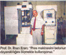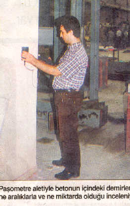 ''Karot makinesi ile binadan beton örnekleri alınıyor, bunları pres makinesi ile kırarak binanın beton mukavemet projesinin uygunluğunu kontrol ediyoruz. Binanın donatı projesi varsa kiriş ve kolonlar açılarak demirlere bakılıyor. Digğer kolonları ve kirişleri, beton içindeki demirin ne kadar ve ne aralıklarla olduğunu gösteren paşometre denilen bir aletle inceliyoruz.'