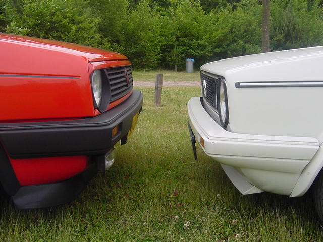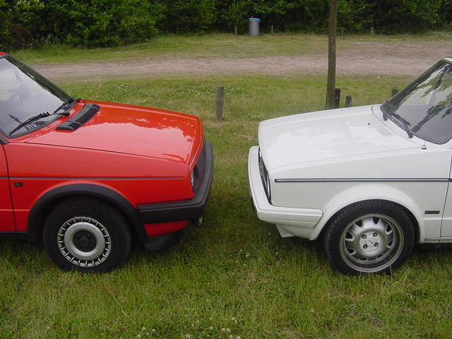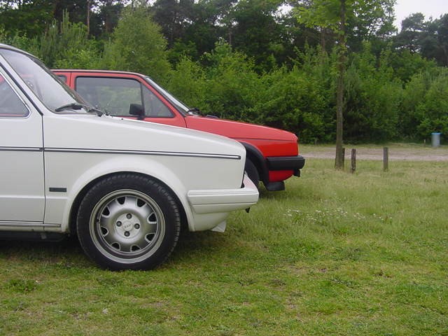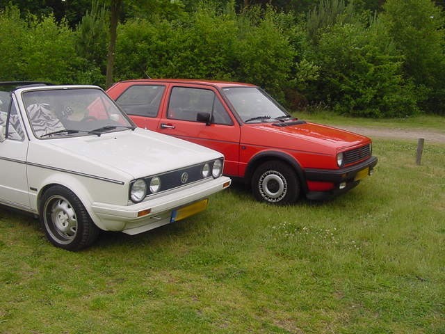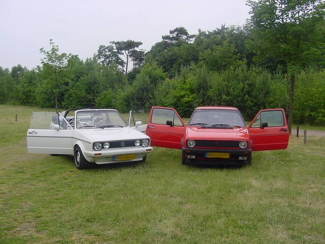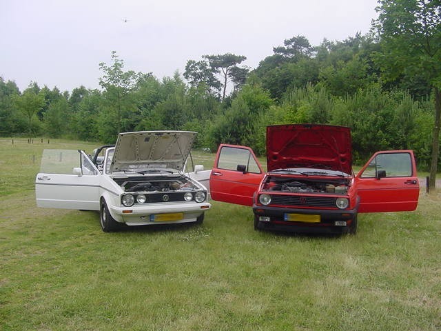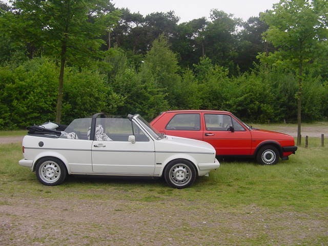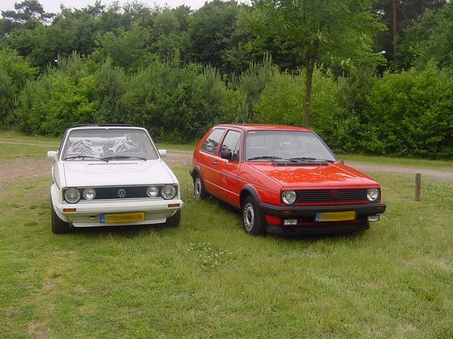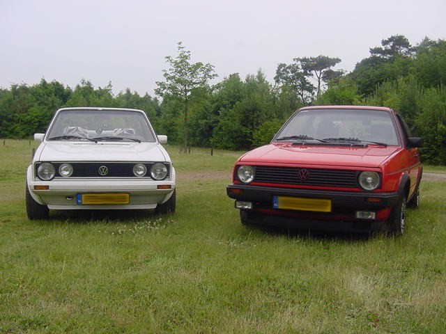 Deze foto zijn gemaakt in de juni van 2001 tijdens een mini VWCRE-Meeting. Je ziet hier mijn Golf 2 en de Golf 1 cabrio van een Robbie (The VW-Maniak).