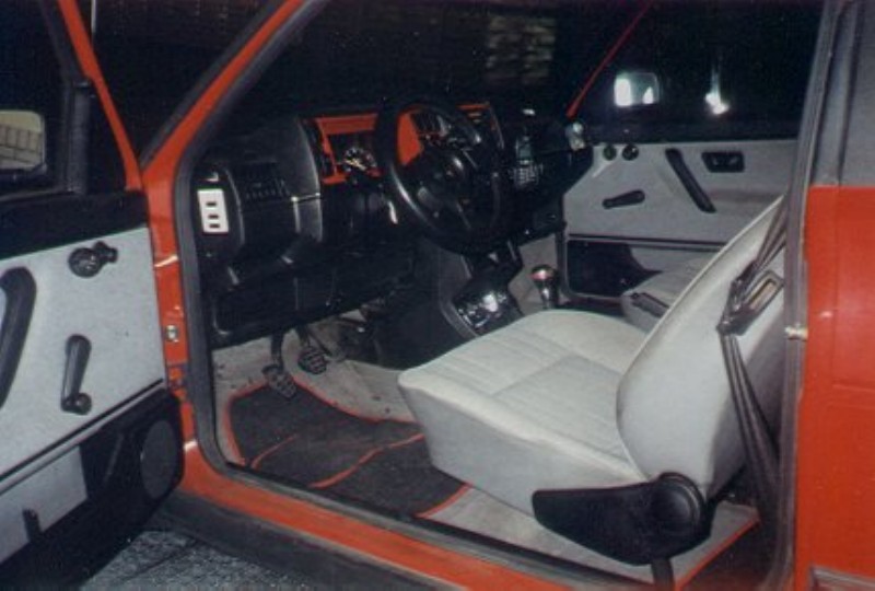 - Extra's: 5-spaaks azev-A velgen in de maat 7,5jx15" , dikke bumpers in de kleur meegespoten, donkere koplampen en een booskijker, verder nog getinte achterlichten en een 102mm sportuitlaat. Binnenin: cockpit in wagenkleur gespoten, hemel en hoedenplank zwart gespoten, 300mm victor sportstuur en rode vw-deurstiftjes.