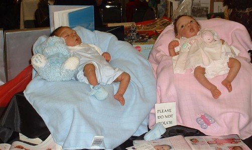 Two Life-size, precious one-of-a-kind dolls by Lorna Miller-Sands ~~~~~~~~~~~~~ On day two of the Philly doll show, members of the Lorna Miller-Sands Collector's Club enjoyed breakfast with Lorna before the show began. Lorna is an exceptionally nice, generous woman and her dolls are absolutely breathtaking! Members of her collector's club who attended the breakfast received a one-of-a-kind doll pin!