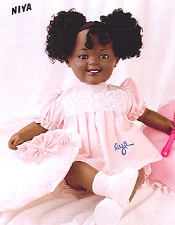 Helen Kish doll collectors await the estimated August 2006 arrival of Bitty Belle Magnifique. A limited edition doll of 750, with a retail of $180, Bitty Belle will be a quick sell out. Remaining on the diminutive doll front, a new playmate for Helen Kish's baby, Ellery, was unveiled at the Robert Tonner Convention, which was held May 4-7 in Denver, Colorado. Ellery's new playmate is 6-inch, AA Jessamyn. I saw a photo of her taken by a conventioneer; however, official photographs are not available at the time of this publication. Keep your eyes peeled for Jessamyn, who is an absolute cutie. Scheduled for release in the fall, she will be the 2006 Kish Collectors' Society Club Doll! If you are not already a member of the Kish Collectors' Society, perhaps you should join and/or renew your membership. Jessamyn is also supposed to get a big sister later on! Have you been watching American Inventor on ABC? I channel surfed a few weeks ago and just happened to stop surfing as Ms. Darla Davenport-Powell was introducing her Here Comes Niya trilingual doll that she created over 20 years ago. Here Comes Niya (pictured above) speaks in English, Spanish, and Swahili and was profiled in the Summer 2002 "Dolls in the Spotlight" article of The BDE. On American Inventor, Ms. Davenport was 1 of 3 finalists chosen by Judge Mary Lou Quinlan. As a result of being a finalist, Ms. Davenport was awarded $50,000 and the original Here Comes Niya was re-designed and a host of multicultural friends comprise the revised Niya and Friends doll collection. Of Judge Quinlan's, 3 finalists, Ms. Davenport's revised invention did not win. I hope the revised doll and her multicultural friends are mass produced for the doll market soon. Links to photos of Ms. Davenport and the revised doll are included on the Resources page of this issue.