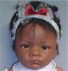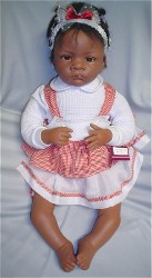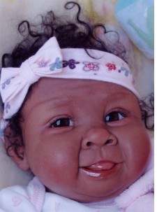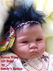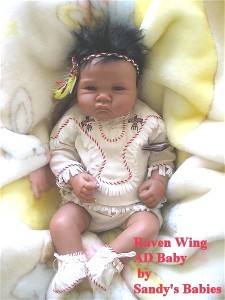 Netherlands doll artist, Sandy Faber, shared photos of her most recent dark skinned doll, Baby Olivia. Made of Australian Modelene clay, Olivia is a one-of-kind doll and will sell for $1250. Sandy also has a Native American silicone/vinyl doll, Baby Raven Wing (see actual doll photos below), that is so adorable, and currently available through Ashton-Drake/Collectibles today for $149.99. Baby Raven Wing is a 22-inch So Truly Real™ silicone/vinyl baby. Sandy is currently working on other African American dolls.