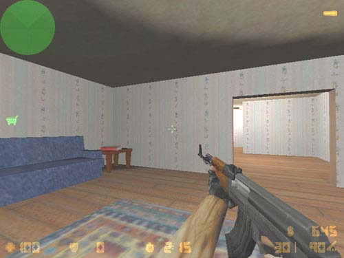The AK47 is the first gun on the rifle list. It is a terrorist-only gun, and a fairly cheep one at that. It does a great deal of damage with it's 7.62mm ammo, and if you fire it one or two shots at a time, it can be very accurate. It works well up close, where firing full auto doesn't matter, and the large damage makes sure your opponent dies first. A standard 30-round clip, with 90 rounds in reserve make this a very good gun for the price.
