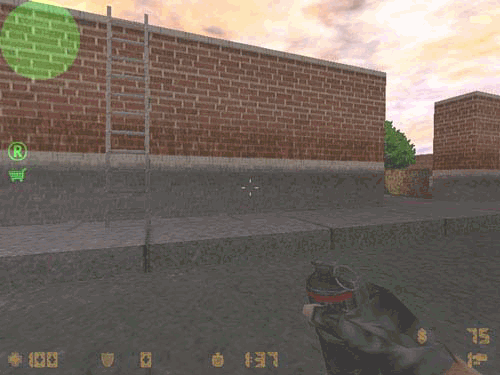 The HE grenade is your generic, exploding, "hurts you bad" grenade. It does fairly good damage, especially against people with no armor. As the distance between the grenade and the target increases, the damage it does becomes less. Usually, you will not kill someone with full health with one grenade, and you can only carry one at a time. You want to use HE grenades either in tandem with another persons grenade, or just as a means to wound someone, so it is easier for you to kill him later. Be careful, because you own grenades will hurt you, and if you are playing with friendly fire on, they will also hurt your team mates.