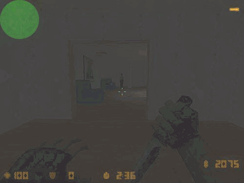 This seems like a cool item, but I really don't ever use it. The animation to the left shows a dark house, then the person turns his flashlight on, and finally he turns night vision on. While it lets you see in the dark without giving your position away, there really aren't that many dark places, and it costs a lot.