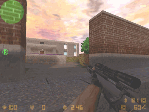 The Scout is the 5th gun on the rifle list, and the first real sniper rifle. Unlike the scopes on the Commando and AUG, the scopes on the sniper rifles have 2 zoom levels, and it actually looks like you are looking through a scope, because you only see a circle of the screen, and the rest is black. The other thing about the sniper rifles is there is no crosshair when you are not zoomed in, and they are very inacurate when you are moving or not zoomed in. You fire one shot at a time with this gun, and have to operate the bolt to load the next shell. This is done automatically, and it is a pretty fast action with the Scout. It had a 10-round clip of 7.62mm ammo, with up to 60 rounds in reserve. This gun takes two shots to kill, or one if you hit them in the head, so be accurate.