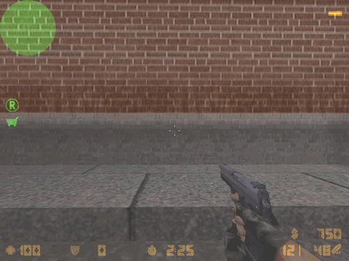 This is the default CT pistol. You start with it each time you die. It has a silencer you can put on and take off just like the M4. It has a 12 round clip, with a possible 48 rounds in reserve. This gun shoots .45cal ammo, so it actually does some damage. Since Beta 7, all the pistols in Counter-Strike are true semi-auto. This means each time you click the fire button, you fire one shot. The faster you click, the faster you shoot. This is a very cool feature, than not many games have.