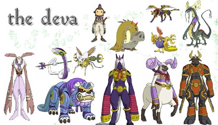 the deva are a grop of digimon sent by the digigods to find the power of digivolution. they find it after 7 of the 12 deva are gone minhiramon,sandiramon,sinduramon,pajiramon,vajramon indramon,kumbhiramon,vikaramon were the first to go then the tamers go to the digiwold and soon disroy magiramon then the antylamon becomes susy's partner then makuramon dies then chatsuramon |