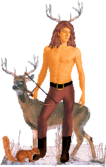 Cernunnos: God of virility, fertility, life, animals, forests and the underworld. The Horned or Antlered God is born at the winter solstice, marries the Goddess at Beltane, and dies at the summer solstice. Also A consort to the mother Goddess. Druids knew him as Hu Gadarn, the Honored God. ![]() |