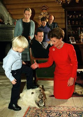 The Royal Family celebrating the wedding of the Crown Prince in August 2001