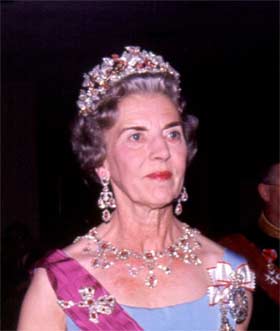 As Queen Consort she wore this Pearl tiara handed over to her eldest daughter Margarethe when she became Queen of Denmark in 1972.