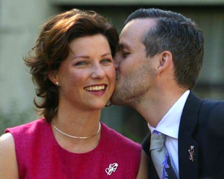 Princess Märtha Louise and her fiance at a photo session on May 22nd 2002