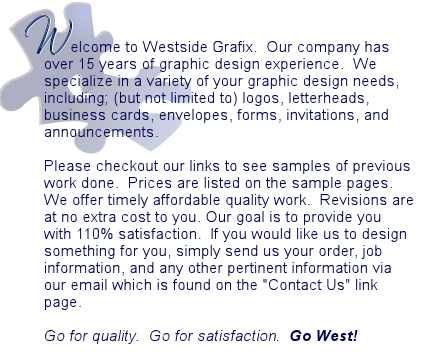 "A truly flawless experience. WestsideGrafix offered suggestions that can only come with years of experience. I needed a one of a kind logo for my business card and they delivered. Outstanding service!"