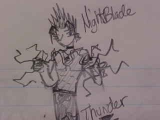 Jeremy/NightBlade: Jeremy is an exsoldier of the Tokyo Military. His trained to fight every day of his life and is very skilled, but he lacks speed. He often hangs out near the docks were most of the street fights take place. NightBlade is a power craving thug! NightBlade's Lighting drains fast so he must recharge by taking it from building or power plants. One of NightBlade's punches is like getting hit by 10,000,000 volts and is deadly when he's fully chraged.