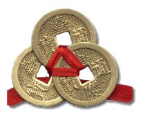 Energize your wealth luck with 3 Chinese Coins ! These three chinese coins symbolize luck from heaven, earth and man. To be placed in the wealth sector of your dwelling. Great gift for anyone needing wealth luck ! Place 3 coins in your wallet to symbolize an inexhaustible source of income. Comes binded endlessly with red ribbon. [Click on image(left) to view more detailed images].