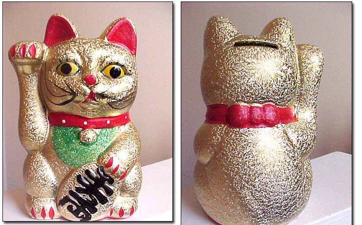 Bring this Lucky Feng Shui Cat home with you with its paws beckoning to invite all wealth into your dwellings ! Cats also symbolise protection against evil spirits as they are able to see in the dark and frighten away spirits that have bad intention. Display this Cat in your wealth sector, Southeast, or in your Inner Knowledge sector, Northeast. Found in most homes, offices and shops worldwide, add this one to your collection ! Serves as a Wealth Enhancer and Savings Bank. Makes an excellent gift or keep it for yourself ! Photos taken of actual products. [Click on image(left) to view more detailed images].