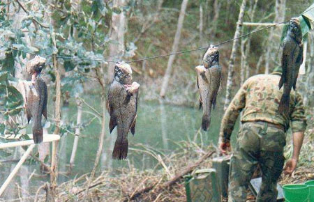 Tassy mate Kelvin with some great trout caught locally(poached probably)at midnight in the rain on fly.Left to right7.5--7--6.5lbs.He had four others break off and lost two other fish in what was a top nights fishing.