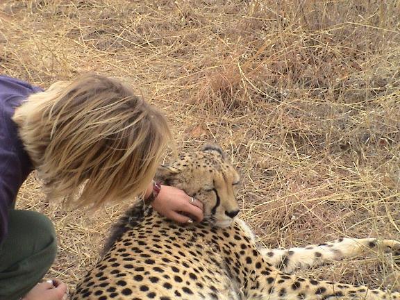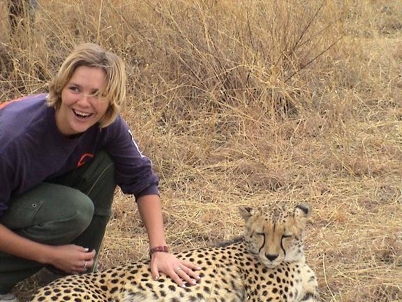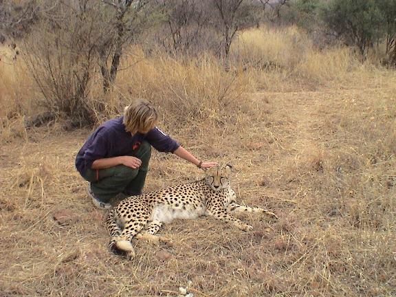 Botswana - 7Jump to page: Index PageBotswana 1 Botswana 2 Botswana 3 Botswana 4 Botswana 5 Botswana 6 Botswana 7 Botswana 8 Botswana 9 Botswana 10 Botswana 11 Botswana 12 Botswana 13 Botswana 14 Botswana 15 Botswana 16 Botswana 17 Botswana 18 Vermont 1 Vermont 2 Vermont 3 Vermont 4 Botswana 2 - 19 Botswana 2 - 20 Botswana 2 - 21 Botswana 2 - 22 Botswana 2 - 23 Botswana 2 - 24 Botswana 2 - 25 9/15/03 Well, it's only been a week and I'm already putting things up! That's because I have some really really really cool pictures that I want to share. Petting a cheetah!!!!! Yay!!! So last week I spent a few days working with Sandy Thurman of the International AIDS Trust on a conference she was running here. Heard some amazing speeches and got completely drunk on red wine a few nights in a row. Sandy is the absolute epitome of a "steel magnolia" as my father says. Drinks like a sailor but puts forth an aristocratic demeanor that's really amazing. I enjoyed her thoroughly, even if I didn't get nearly enough sleep last week. (It was 2am, on a work night, in the casino, still drinking, chatting with a few Irish military types when I realized that this was a pretty amazing woman.. she could outdo a 22 year old!!!) Then - this weekend I had my first AND second cases of food poisoning. Blah. We rented a car to go exploring but I stayed home all day Saturday to try and sleep it off. Sunday I felt better - and I would have dragged myself out of bed even if I hadn't - because we were going to Mokolodi nature reserve. This is a short distance out of town. They have rhinos, hippos, elephants, all sorts of edible animals for the predators, and two tame cheetahs. Tame as in.. we can pet them. Imagine a cat the size of a large dog that purrs with the strength of a car engine.. and LOVES to be petted... ABSOLUTE HEAVEN. I've got it on film as well as pics - on tape you can really hear this guy purring. His name is Duma and he's 8 years old. His brother was elsewhere in their enclosure, but both of them were quite enjoyable and loved company. I am so going to get one... I miss my cats.. My parents have been sending me pictures of Safari (their new kitten that they named in honor of my trip to Africa) and it makes me pout. But - I'd say this weekend made up for it.