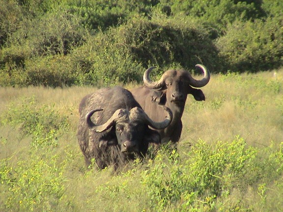 After our cruise we headed for Chobe Safari Lodge, got ourselves checked in and had lunch (included in the cost of our safari). We also discovered that we’d be finishing our game drive too late to get across the border into Zambia, so we offered Karmen a place in our room. For a bible student, he was great – no proselytizing, told us about what he was doing when we asked but didn’t push anything. Really sweet kid. And it’s nice to have the token XY in these situations because people leave you alone more. Anyway, we dropped our stuff in our room and headed out to a game drive in Chobe. It was nice – not nearly as nice as Madikwe though. There were just too many people and it was too obviously commercialized. We ran across our separated traveling companions again, this time in their own truck. We saw lots of hippos, and Cape Buffalo which I hadn’t really seen before (not in the daylight at least). There are apparently 6,500 elephants in Chobe! The giraffes up there are also grayer (less orange) than in Madikwe. I don’t really understand why.