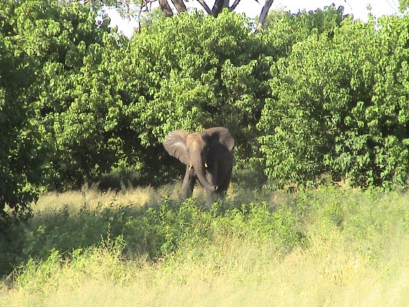 About halfway across the river, the boatman asks if we’re spending the night. We say we’re not booked to, to which he responds: “Oh. Oops.” Apparently he was supposed to pick up another group of people and got us by accident. Oh well. He still took us to the Botswana side and dropped us off before going back for his real customers. We then bothered all the people with Safari trucks until we found the one we thought we were supposed to be on. The boy from the ferry was also in the truck with us – name was Karmen, a 19yo Canadian going to Bible school in Northern Zambia (right on the border with the DRC).