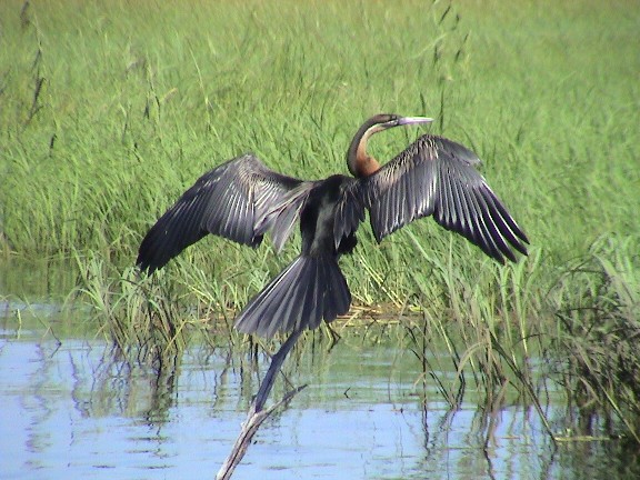 I have a bunch more pictures of random birds but decided to stick with only one upload. This guy has his wings spread to dry them – he just dove into the river to catch dinner (yum). As our boat came past he got scared, took off, and could barely fly. It was kind of sad.. |