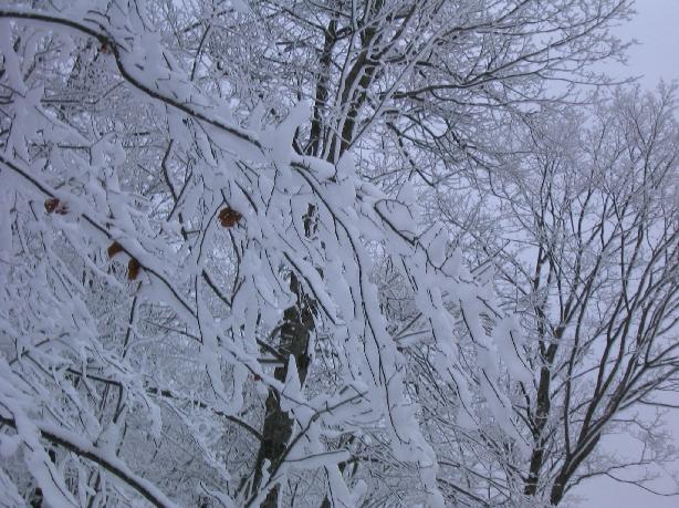 Every snow we got was followed by rain so all the snow stuck to the branches, giving the world a surreal look. |