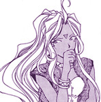 Frst off, Urd is the eldest of the three Norns. She has blue triangular emblems(the facial markings) and her domain is the past. Out of the three sisters she is the least similar in looks due to her platinum blonde hair and much darker skin. Urd is the tallest resident of the temple which is only magnified by Keiichi and Skuld's shortness(Belldandy's only slightly shorter than Urd). Her alternate energy source is saké (Japanese rice wine) and her travel medium is television. That's about it for the basic "stats".
