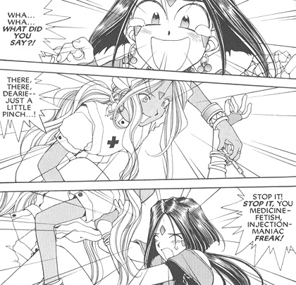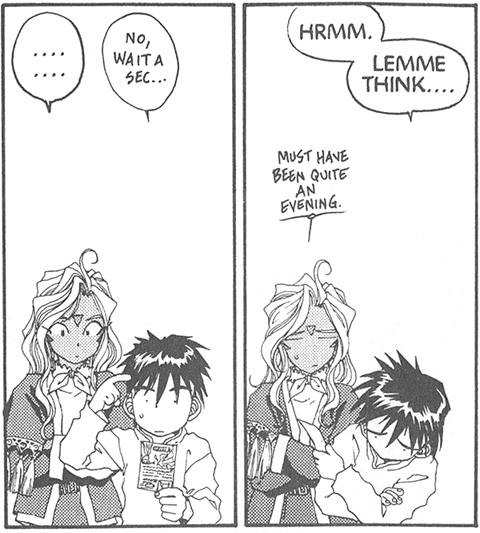 Urd: "Okay, here's an idea... I've heard the best cure for memory loss is--