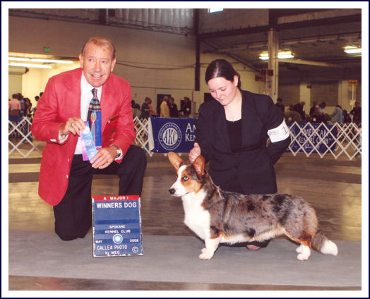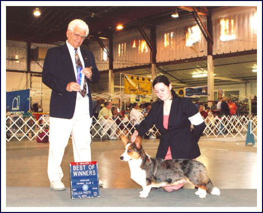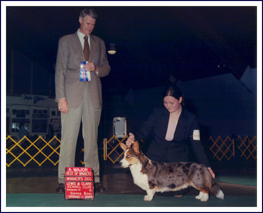 After many years of wanting and wishing, in 2009 GoGo and his wife, Bronte, gave me a litter for my birthday. I could not be happier with his babies, who are lovely lookers with his great temperament. Dexter and Ella are doing well in the ring, and have bright futures ahead of them.Pedigree: Golem