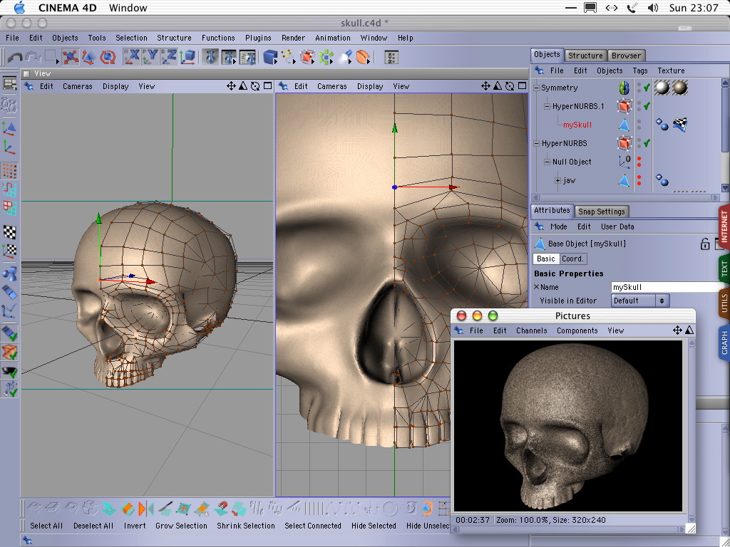 Cinema 4D XL r8 from Maxon is the program i use for my 3D artwork. It uses the built-in modeler and many features that make this program one og the best 3D packages for Mac OSX. check my 3D-job