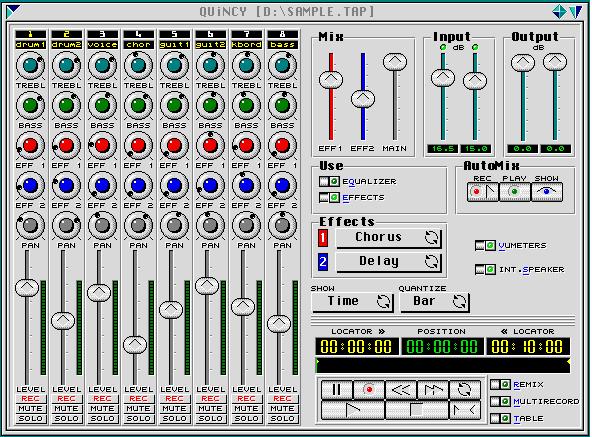 Some Hard-Disk recordings have been done on my Atari Falcon 030 with Quincy 2.6. Everything is recorded separately suchas a REAL 8-tracks tape recorder, by separately plugging Drum-Machine, Bass, Guitars, Keyboards and Vocals
