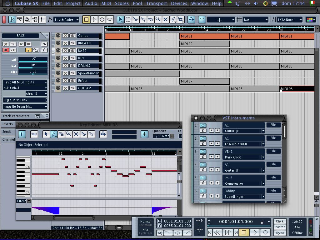 I am Working on my CD. My band is my computer: A Mac with Cubase SX. Only my guitar is played for real. Keyboards, Drums, Bass and effects are handled via VST instruments