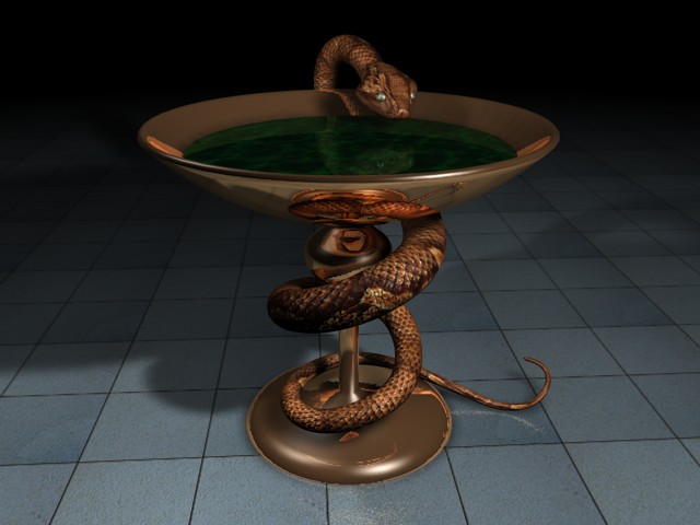 The snake is made with 2 separated sweep nurbs on a spline object. The effect is pretty nice and... poisoning!