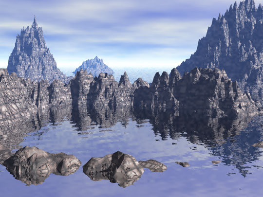 Add a water, add 2 terrains, increase the fog then render it.... Nice, uh? thaz Bryce-5!