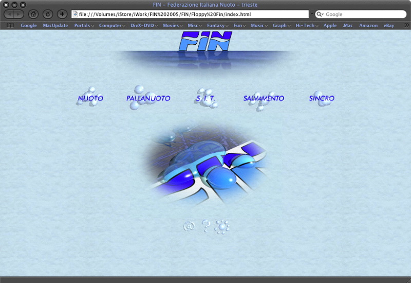 This Website is the regional section of the Italian swimming federation. The water below the logo is animated. the rollover "drops" becames blue when the mouse flies above.