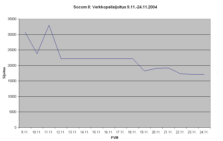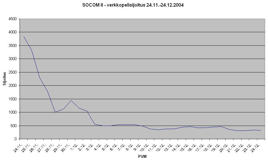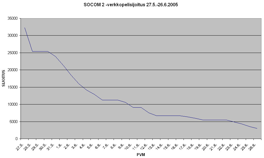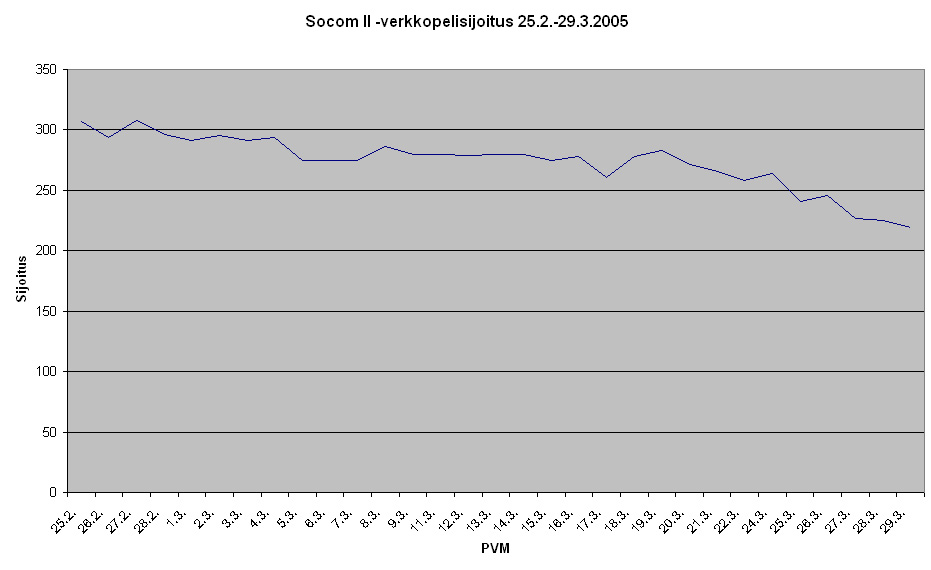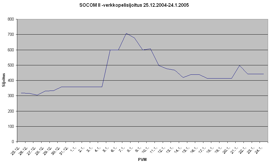 Socom 2 verkkopelisijoitus (22.7.2005, pelaaminen aloitettu 22.09.2004): 24352
