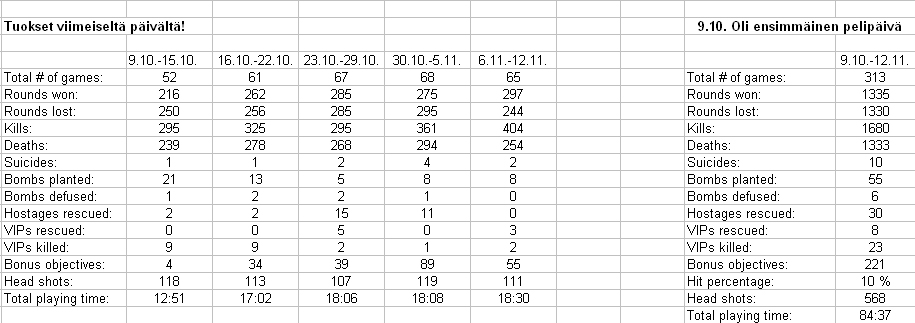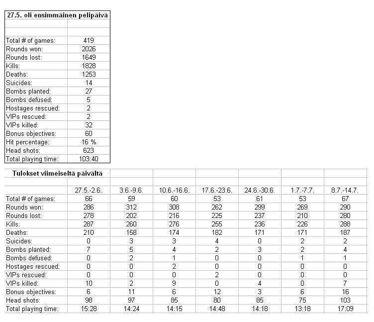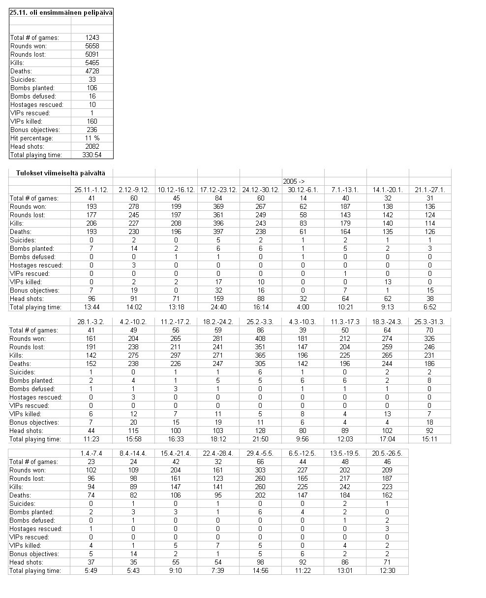 Päivityksen yhteydessä tilit nollattiin. Tulokset ajalta 25.11.04-26.5.05: