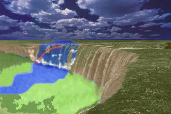 The world around you seem to stretch on forever, an endless flat plain in one direction and an endless rolling sea in the other but the two never met, a cliff you could hardly believe (think Grand canyon) kept the two as far apart then should be possible. Along the cliff wall was what looked like a…a…well it looked like someone had taken a big bite out of the cliff leaving a bay like valley a few meters away from where every one stood, But what a valley! It looked like the whole of HemOtarn could have fit in it and then some. Waterfalls, forests, grasslands and an amazing white sandy beach before that endless ocean.