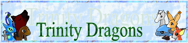 Hello every one and welcome the the Crescent, the new home of Trinity Dragons! All of the links to the side now work and we have ADOPTIONS!! only a few but they are now up Also sevral derraka have now hatched!! go to "keepers" to give them a visit!! On another note iv redrawn the Horses (the others were rubbish) ![]() So if you want your old horses to be updated to the new style just send me an e-mail useing my mail dragon Shadow, make sure you leave the address of the page the horses are on. |